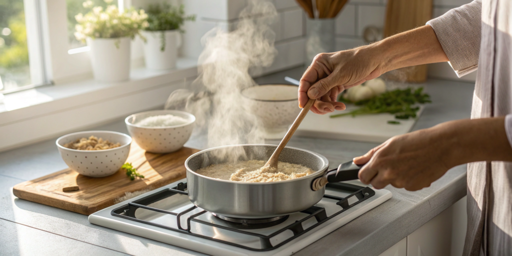 - Cook for 4–5 minutes, stirring occasionally, until creamy.
